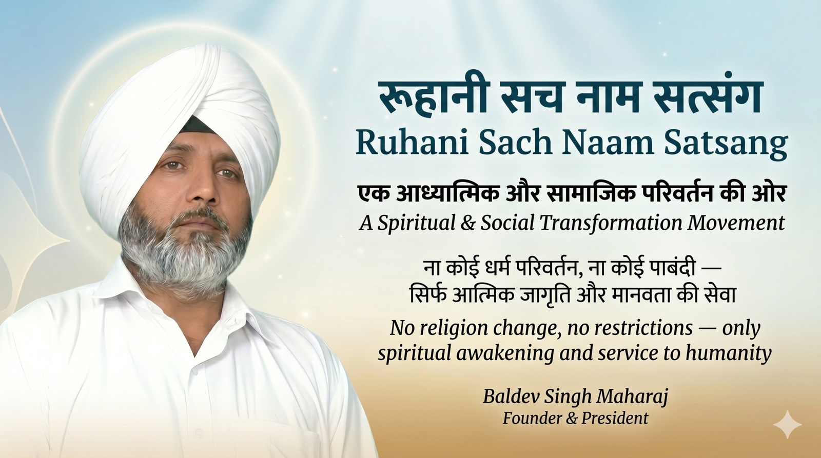 Ruhani Sach Naam Satsang is a spiritual path dedicated to awakening inner consciousness and connecting every individual with the true essence of life through Naam.